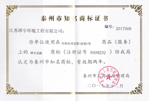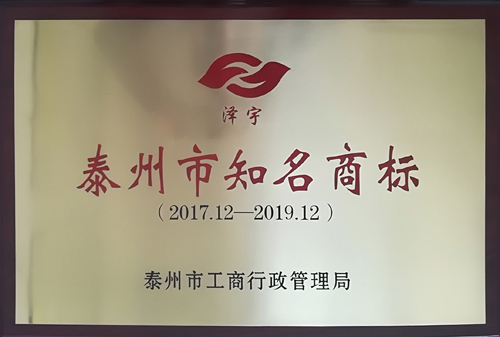 喜訊—祝賀我公司獲得2017-2019年度“泰州市知名商標”稱號